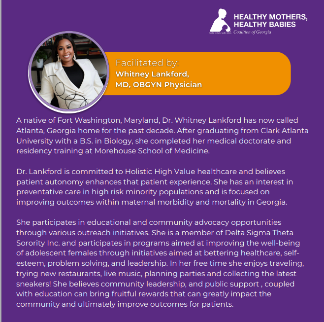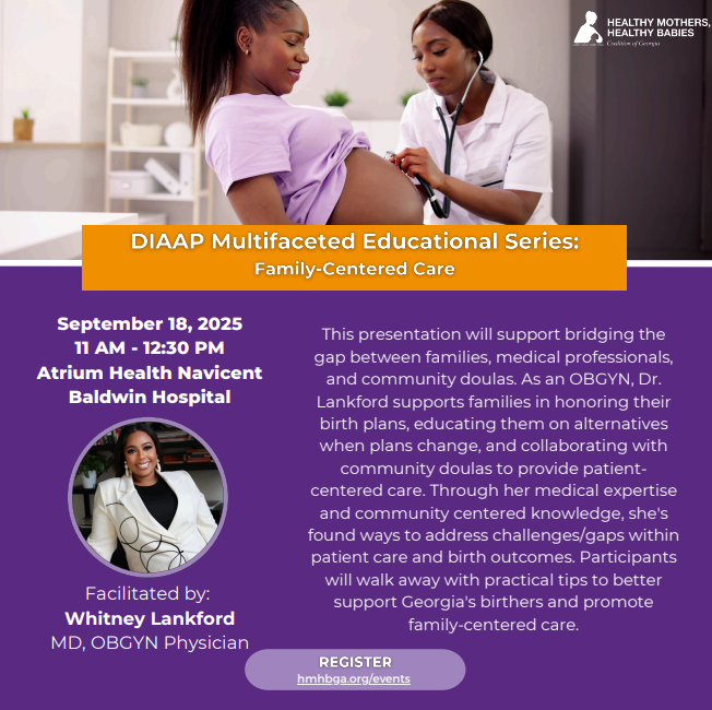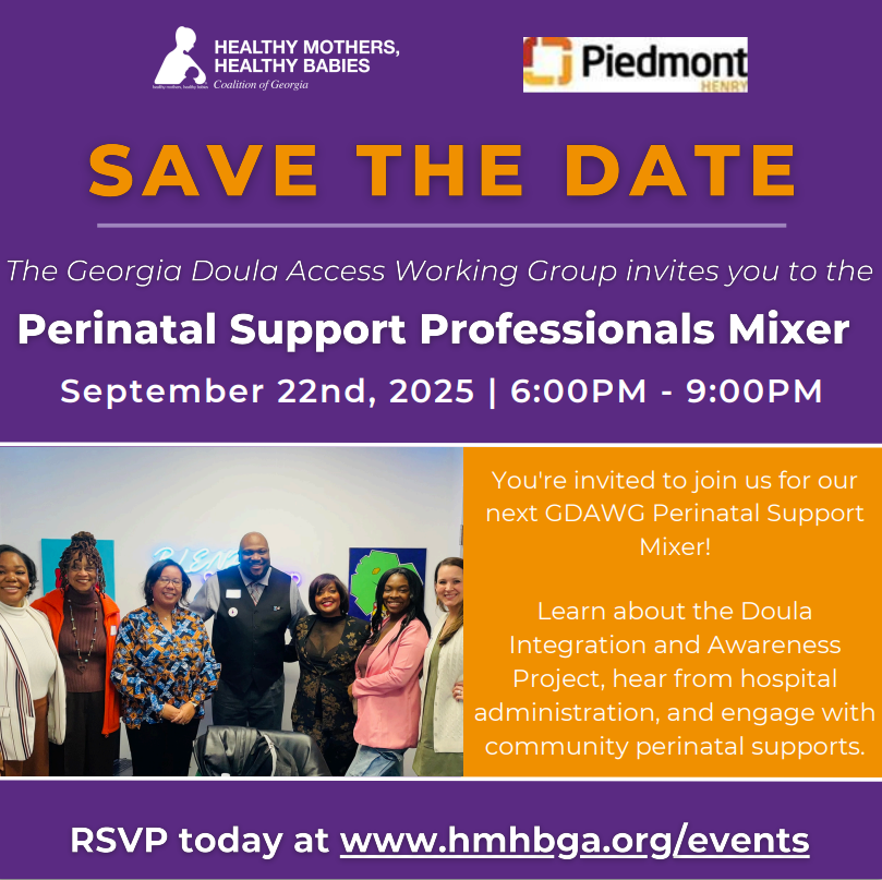 Attendees will learn about HMHBGA's Doula Integration and Awareness Project, hear from hospital administrators, and engage with community perinatal supports!